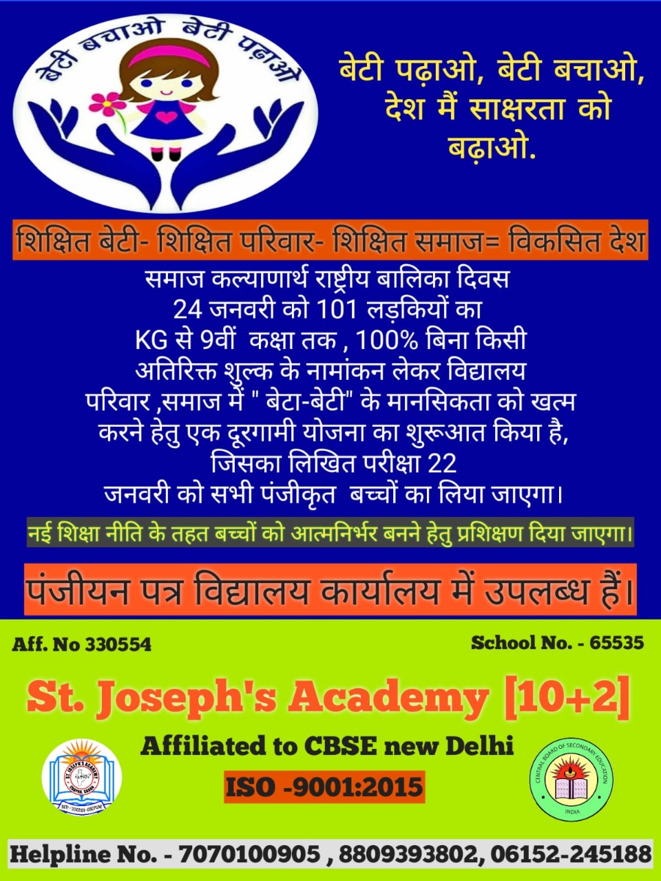 St. Joseph’s Academy aim to make a mark in the educational scenario by providing unique blend of knowledge and experience and thereby producing global citizen.